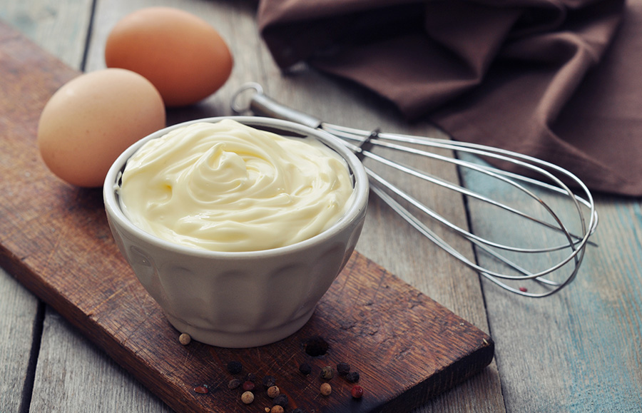 Všechny suroviny musí mít pokojovou teplotu. Do mixéru dáme 2 celá vejce, hořčici, špetku cukru, soli, mletého pepře a mixujeme. Přitom víčkem přiléváme tenkým pramínkem olej. Během mixování přidáme 2 krát 1 lžíci vinného octa. Hotovou majonézu dochutíme ještě hořčicí, cukrem, octem a podobně. Pokud chceme tatarskou omáčku, přidáme jemně nakrájenou cibuli a sterilované okurky.