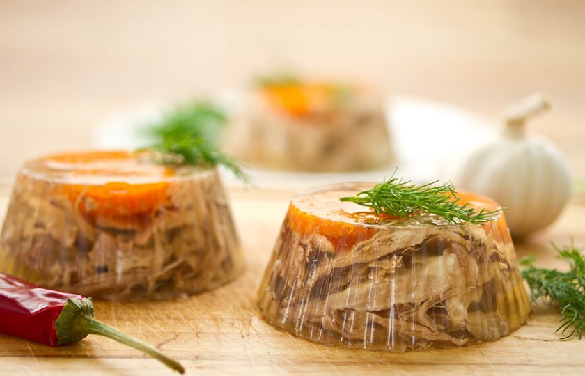 Koleno, nožičky a bobkový list vložíme do vody a společně vaříme tak dlouho, až maso samo odpadává od kosti. Maso z vody vyjmeme, ale vývar nevyléváme.