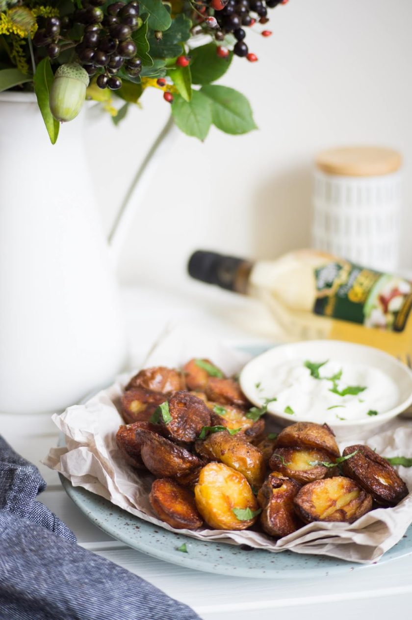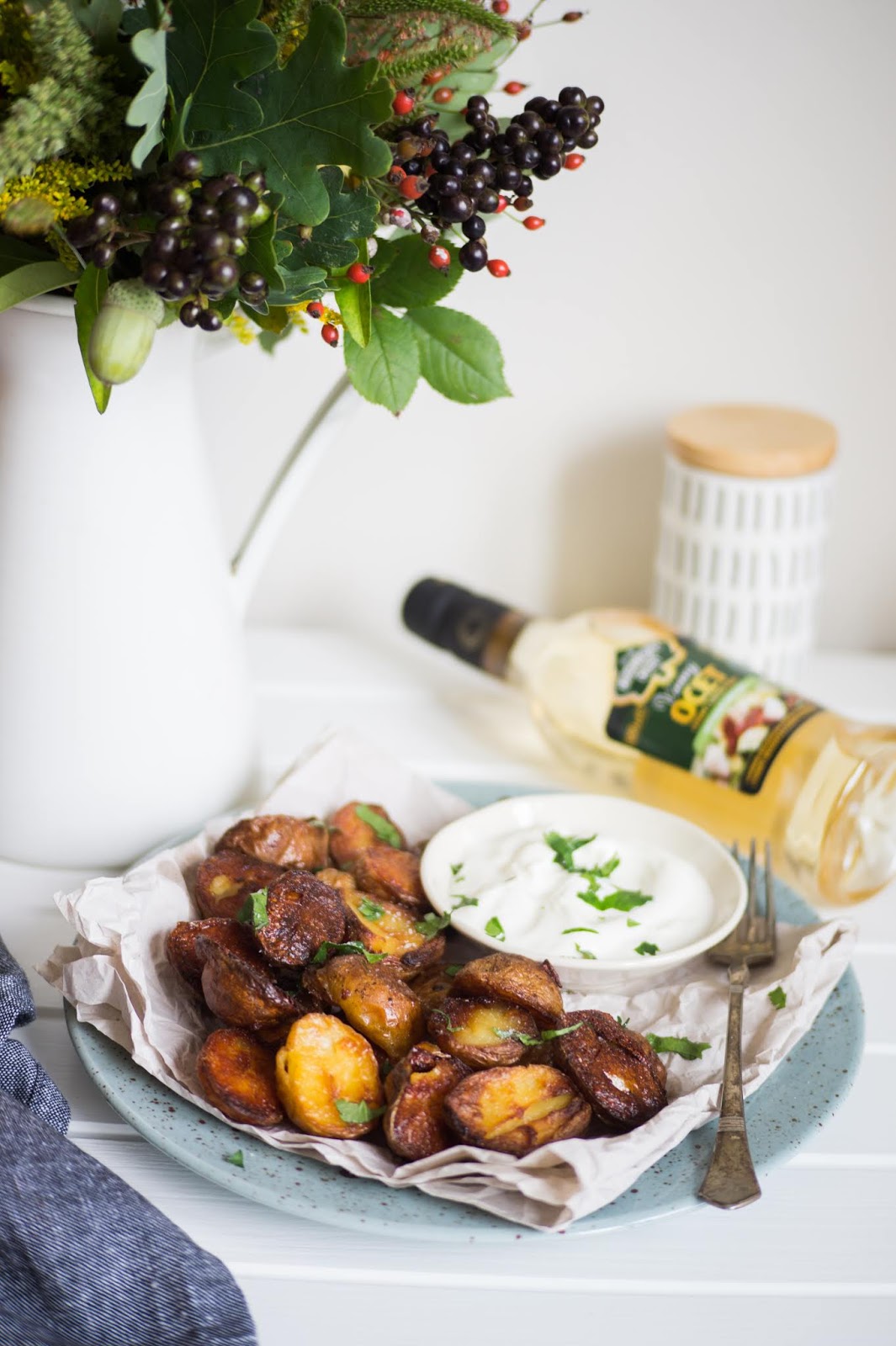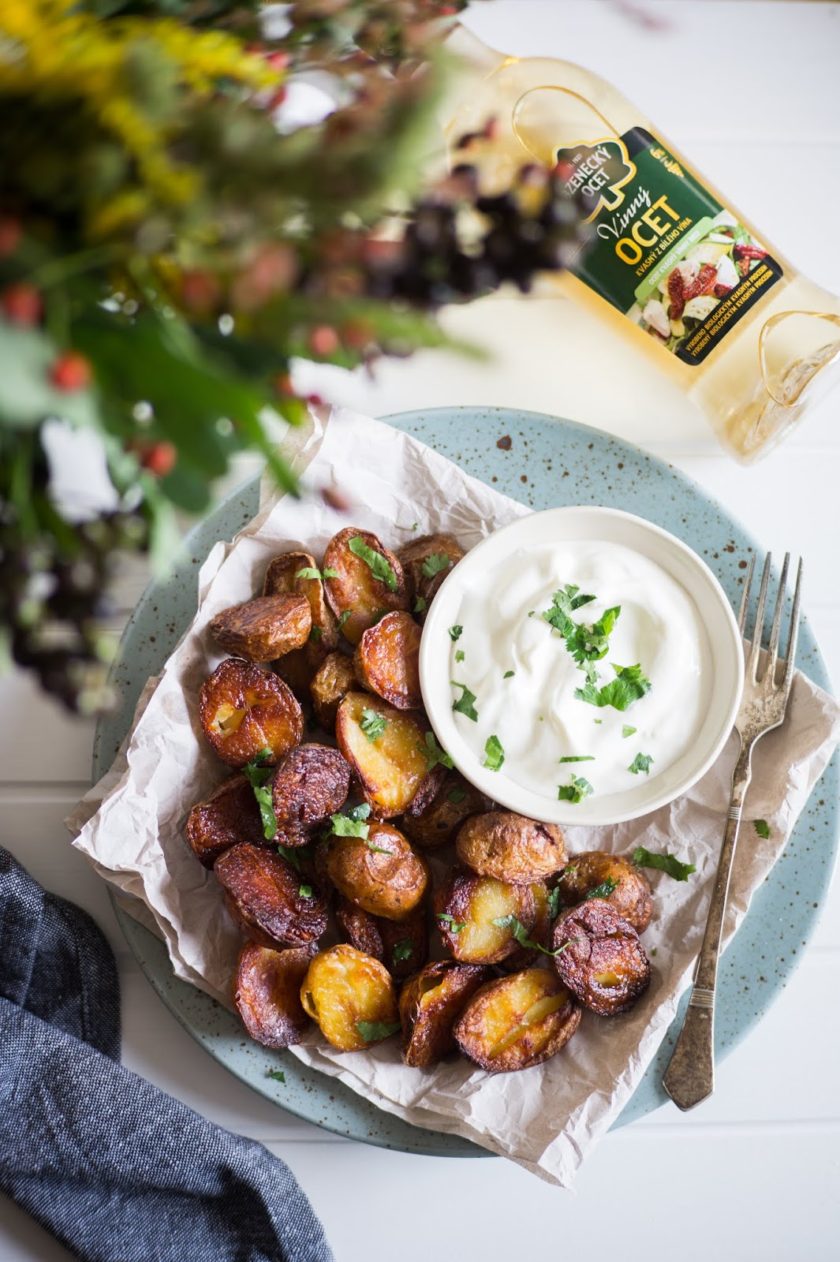 Neznám nikoho, kdo by neměl rád brambory. Já je miluju ve všech podobách, ve slupce, šťouchané, jako kaši, hranolky nebo třeba zapečené. Tyhle v troubě pečené brambory s octem a solí jsou nový recept do mé sbírky oblíbených úprav brambor. Výborně se dají připravit jako chuťovka třeba ke sledování nějakého sportovního zápasu nebo když přijdou kamarádi. Stačí je jen tak lehce namáčet do dipu ze zakysané smetany a bylinek.