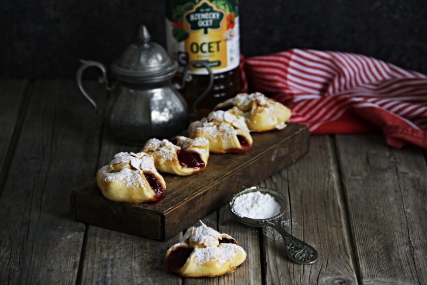 Možná kdekdo zná tohle nepravé listové těsto, které můžete variabilně použít na slané či sladké pečení šátečků, taštiček nebo závinů. A věděli jste, že se do něj používá i ocet? Já použila ten klasický, kvasný lihový.