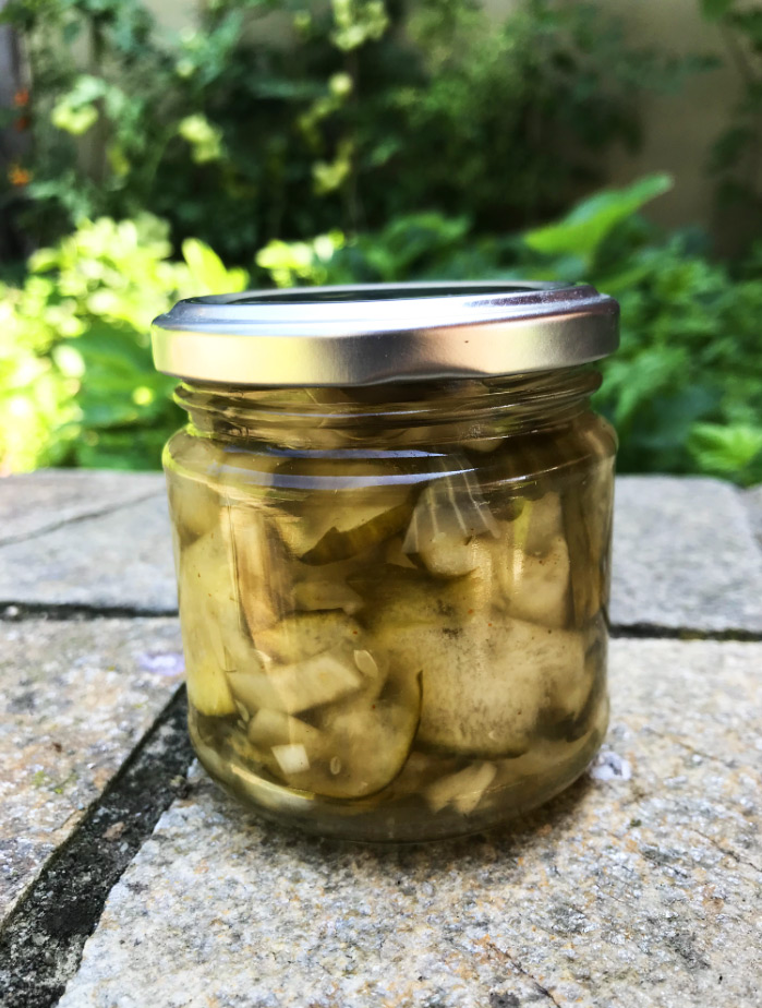Tento recept je velmi zajímavou obměnou ke klasickým nakládaným okurkám nebo tzv. kvašákům. Výsledek je vynikající k letnímu grilování nebo jakémukoliv masu.